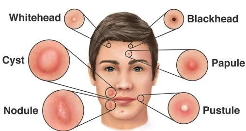 Blackheads: pimples that appears a black dots because the debris inside the follicles have been exposed to air